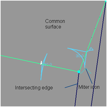 To successfully create a mitered surface, one surface is common to both edges; the other two surfaces must intersect.