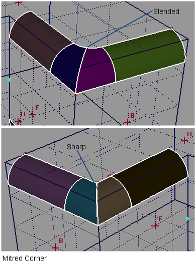Click on the corner shape manipulator to toggle between Sharp and Blended corner treatment.