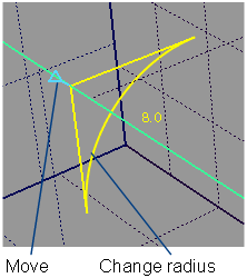 Click on a radius manipulator handles to move it or change the radius value (See the section Using the Radius manipulator for more information). You can also type a new radius value through the keyboard.