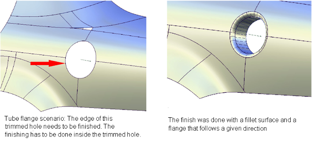 The Tube flange and Fillet flange tools were designed to help you finish edges of surface models.