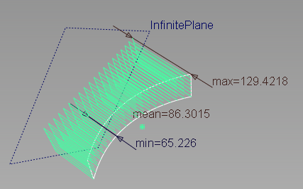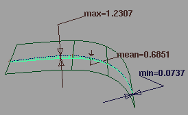 To compare a curve to a surface, choose the Deviation > Curve to Surface tool