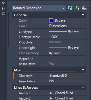 To revert the dimension to the properties of its dimension style, select the dimension, right-click, and select Remove Style Overrides.