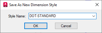 Note: When you select a specific dimension type, the New Style Name text box is disabled since it is a substyle of the selected dimension style you started with.