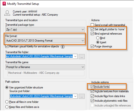 Notice the changes to the Files tree, the files related to the fonts used in the drawing are now part of the transmittal package.