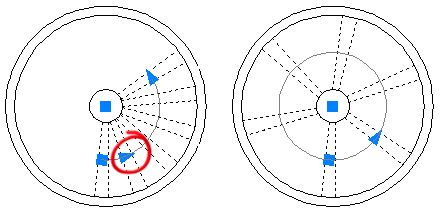 Use this method if the polar array is associative. This procedure controls whether the objects are rotated about the center point or maintain their original alignment.