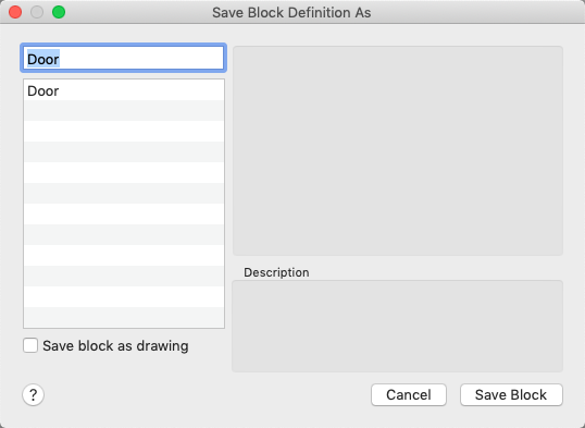 Saves the geometry in the Block Editor as a drawing file. Selecting an existing drawing file on disk overwrites the file. By default, the block name specified is used as the drawing file name.