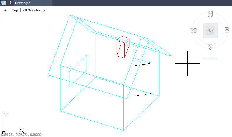 If you press Enter at the Select Objects prompt, DVIEWBLOCK displays a preview image. You can create your own DVIEWBLOCK block in a 1 unit by 1 unit by 1 unit area, with its origin at the lower-left corner. The following illustration shows an example of using the default DVIEWBLOCK to set the view (moving the graphics cursor adjusts the view).
