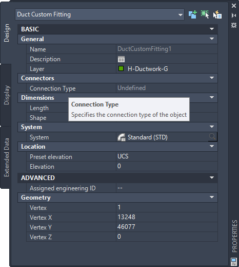The Properties palette displays tooltips when you hover the cursor over a property in the list.