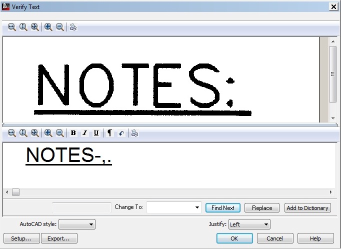 Use this dialog box in text recognition operations to examine the source text and control the format of the output text. The dialog is called Verify Text or Verify Table, depending on which option was selected.
