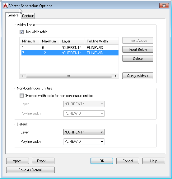 - Separate vectors based on the width of the raster lines by using the General tab of the Vector Separation Options dialog box. For example, you can assign thin dimension lines to a separate layer from the thicker object lines. Simply specify two or more ranges of line widths for the raster entities, then assign a layer and polyline width value to each range.