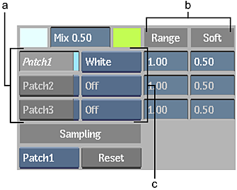 (a) Patch buttons (b) Patch controls (c) Patch boxes