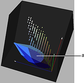 When you plot a range of colour values in the image, the resulting plotted region in the RGB viewer appears as a 3D convex hull. You can plot up to three colour ranges in the image. The plotted regions do not in themselves affect the key image in any way.