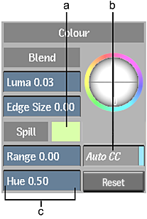 Note: When you select the colour you want to key from the Master Keyer menu, the colour that appears in the Spill colour pot is automatically updated to match the key colour. However, the inverse is not true—when you sample a colour from the Spill colour pot, the sampled colour used to generate a key is not updated.