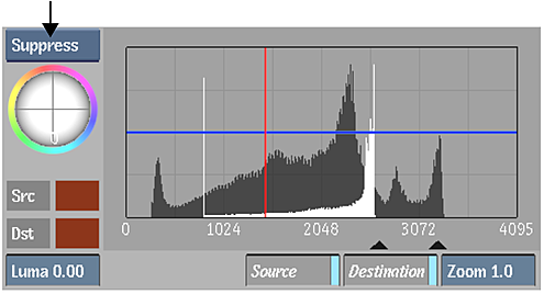 When you key clips in the Modular Keyer, there can be colour spill. You can refine the key by suppressing colour spill in the Colour Warper. Use the Saturate and Suppress trackballs in the Basics menu. Use the Suppress trackball to suppress the colour spill and the Saturate trackball to correct any unwanted colour suppression. When you use these trackballs to modify colour in the image or clip, a range of colour is affected.