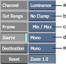 (a) Channel Selection box (b) Out Range Option box (c) Frame Selection box (d) Source View Option box (e) Destination View Option box