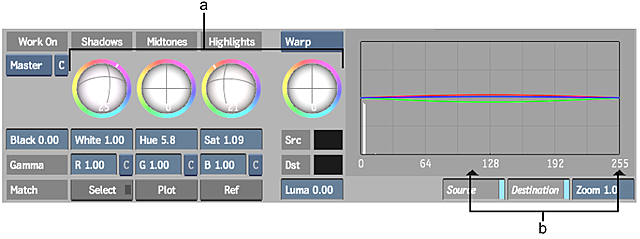 Note: When you drag the Midtones trackball, the RGB curves in the 2D luma histogram also reflect the changes you make.