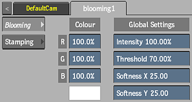 The Blooming menu is divided into two tabs, each with its own type of blooming effect, which can work independantly, or in combination with each other.