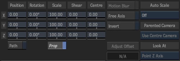 - Select whether to autoscale when Position settings are changed relative to the camera (On Position Changes), or when Position, Rotation, Shear, or Centre settings are changed (On All Transforms).