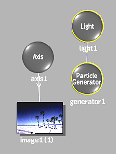 - Double-click the particle generator node. You do not need to be in Schematic view to add a node in this manner.