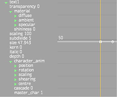 You can animate the 3D text property and geometry channels in the Channel Editor. However, you cannot animate the text string or its profile curve. The 3D text channels are contained in the text folder.