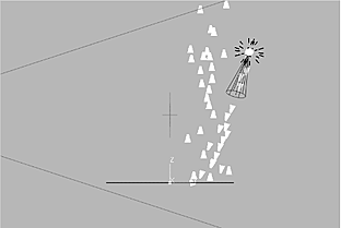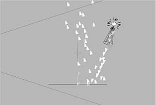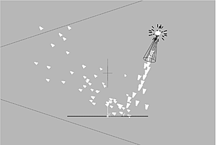 | Generator+ Extinct | Make particles disappear and create an additional particle stream when particles reach a parented surface. Only the Max Dist parameter works with this type of bounce unless the particles end in another particle stream. See Combining Particle Streams. |