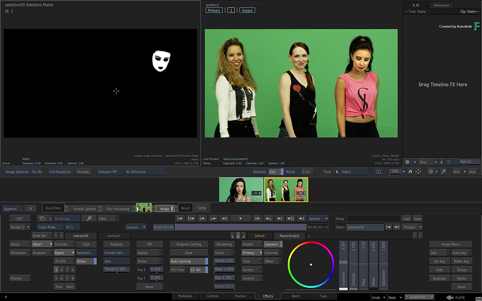 The Semantic keyer is a keyer part of the Selective node, available in Action and Image. This keyer uses a machine learning model to automatically extract features it has been trained to recognize, and then create a matte out of skies, human bodies, human heads, or human face features.