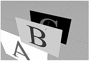 When Z-buffer is off, the distance of objects from the camera eye is not considered. Objects are drawn in the order shown in the Priority Editor. To follow the previous example, you can turn off Z-buffer and change the priority of Image B so that it is drawn on top of both Image A and Image C. The Z position of these images is therefore ignored.