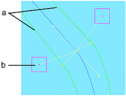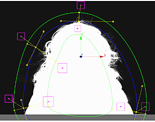 - On vertices without pickers, the softness borders delineate the area where a softness gradient is applied.