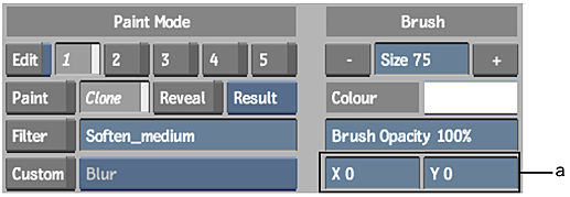 Use the Clone medium to copy a region of the image and paint it on a destination point. The result image is used as the source for the Clone medium. The offset between the origin point and the destination point is set in the Offset fields.