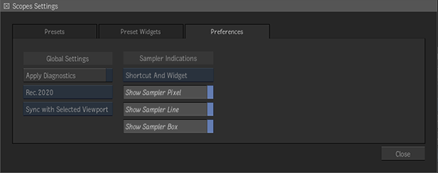 - Control when the Colour Sampler indicators (Pixel, Line, Box) appear in the scopes.