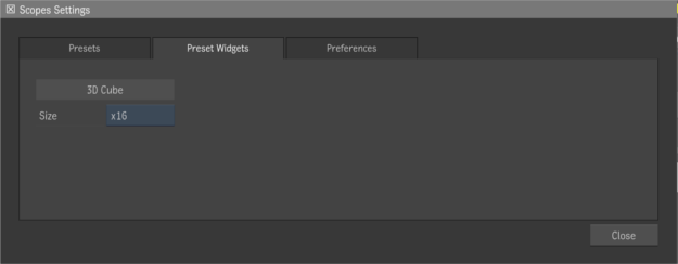 - Use to set the size of the 3D Cube. Options are: x8, x16, x32 and x64.