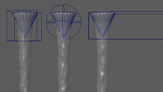 You can activate and animate an emitter's boundary to turn it off or on gradually. This method can be useful in particular cases, such as when the emitter mesh needs to be rendered or if you do not get the desired results by scaling the emitter mesh.