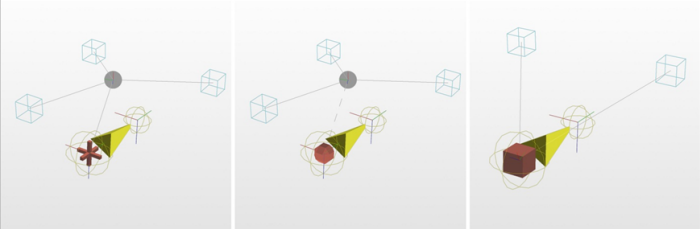 You can use these extraction types on a set of markers to get the rotation and translation of a goal: position and rotate joint in markers, rotate joint in markers, and aim joint at markers. The following figure shows the extraction types.