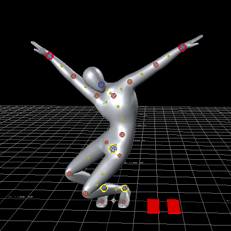 The Dancing Man program described in this topic constrains a character's hip effector to the screen coordinates (x,y) of the mouse. At the end of this step-by-step tutorial, a character appears to dance in the scene when you move the mouse. The image below shows the result of The Dancing Man program.