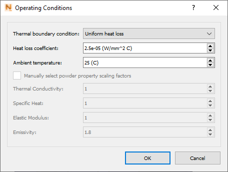 Operating Conditions dialog, choose the ambient temperature and thermal boundary conditions during processing.