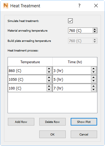 Build Plate panel to specify the build plate material, size, build plate heating, and mechanical constraints.