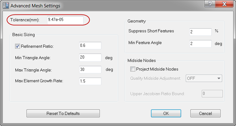 The Tolerance setting has been moved to the Advanced Mesh Settings dialog, which you can open with the Settings button on the main Mesh Settings dialog.
