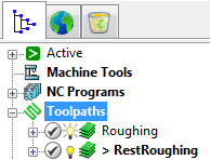 at the top of the toolpath tree shows the toolpath is gouge-checked, but not checked for holder details. To see more information, expand the