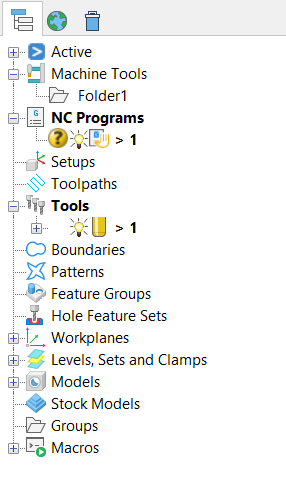 - Check if the NC program in the Explorer is shown in bold and preceded by the > symbol to indicate it's active. If it's not active, right-click the NC program name, and select the Activate option.