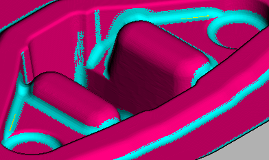 Zoom into the machined areas to view the cleaning up of the non-tangential surfaces.