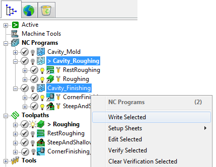 Cavity_Finishing NC programs. Right-click and select