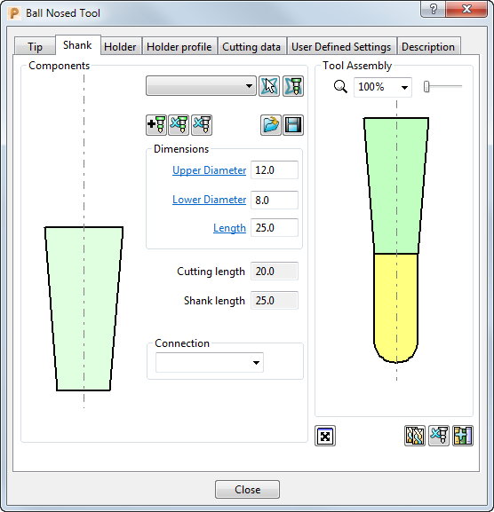 The new tool is shown in the Explorer and is drawn in the graphics window, where it is automatically aligned with the Z axis.