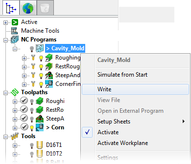- In the Explorer, right-click the NC program,