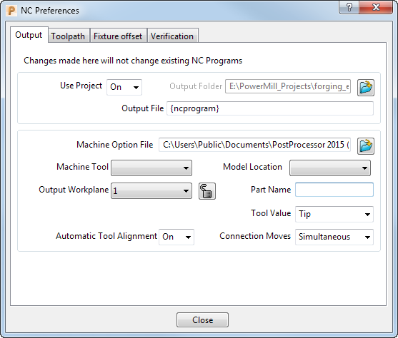 Select Use Project - Off to write the NC program file to a different folder. You need to specify it in the Output Folder box.