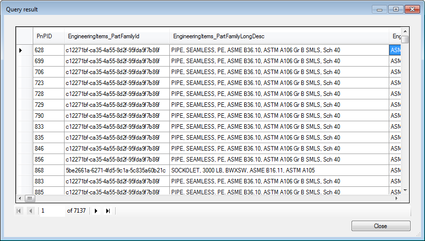 Query Result Dialog Box