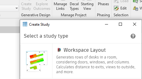 Specify the goals, constraints, and other inputs to use when generating design alternatives (outcomes) with Generative Design in Revit.