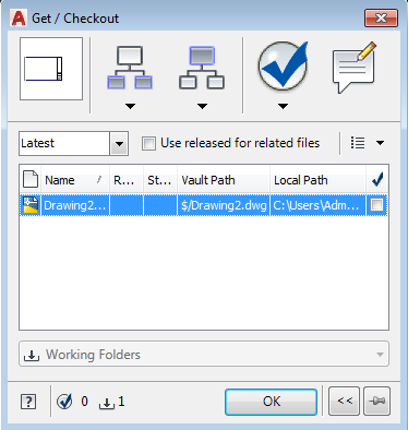 Learn about the Get/Checkout Dialog in the AutoCAD Vault add-in.