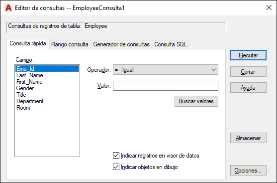 Abre el cuadro de diálogo Opciones del visor de datos y de consulta.