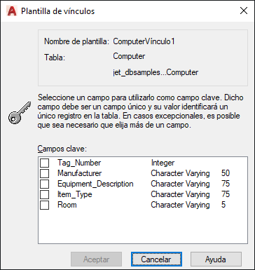 Atención: Seleccionar un gran número de campos clave pueden afectar negativamente al rendimiento de la opción Selección de vínculos y de otras operaciones de conectividad.