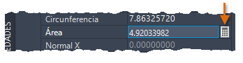 Por ejemplo, cree un círculo y visualice la paleta Propiedades. Al seleccionar el círculo, una de las propiedades geométricas es Área. Si hace clic en el icono, aparece la calculadora rápida y puede calcular un nuevo valor para el área como, por ejemplo, dividirla por 3. Al hacer clic en Aplicar en la parte inferior de la calculadora rápida, el círculo ajusta su tamaño.